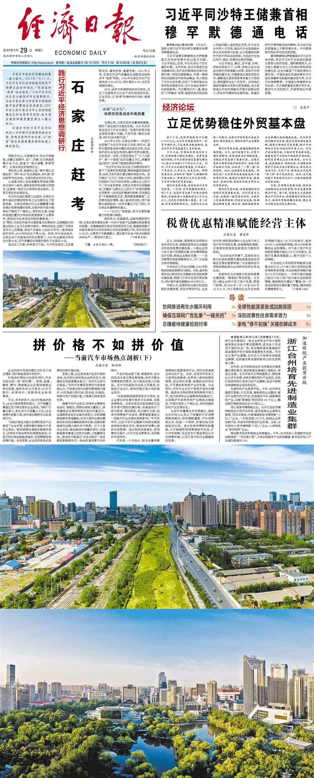 | 石家莊市是我們黨解放的第一座大城市。2013年7月11日,習(xí)近平總書記在西柏坡同黨員干部群眾座談時指出:“黨面臨的‘趕考’遠(yuǎn)未結(jié)束!绷(xí)近平總書記對正定古城保護(hù)作出重要指示,為在石家莊舉辦的首屆中國國際數(shù)字經(jīng)濟(jì)博覽會發(fā)來賀信,2021年初又給石家莊市平山縣西柏坡鎮(zhèn)北莊村全體黨員回信,給石家莊建設(shè)和高質(zhì)量發(fā)展注入強(qiáng)大動力。 石家莊市把習(xí)近平總書記的關(guān)心關(guān)懷轉(zhuǎn)化為高度的政治自覺、思想自覺和行動自覺,以“趕考”姿態(tài)在高質(zhì)量發(fā)展的軌道上踔厲前行。 西倚太行山,北跨滹沱河,華北平原腹地,京畿之地要沖,京廣、石德、石太鐵路縱橫交會于此,被譽為“南北通衢、燕晉咽喉”。這是石家莊的地理區(qū)位。 革命的土地、英雄的土地,“新中國從這里走來”,“兩個務(wù)必”在這里誕生,我們黨“進(jìn)京趕考”的出發(fā)地。這是石家莊的歷史方位。 以首都為核心的京津冀世界級城市群的區(qū)域中心城市,國家首批科技創(chuàng)新示范城市,全國唯一被定為大商埠的省會城市。這是石家莊的發(fā)展定位。 作為華北地區(qū)重要工業(yè)城市,石家莊為新中國經(jīng)濟(jì)建設(shè)特別是工業(yè)發(fā)展作出了積極貢獻(xiàn)。石家莊西部太行山區(qū)蘊藏著豐富的煤礦資源和建材資源,東部沖積平原為糧棉生產(chǎn)提供了廣闊沃土,便利的交通、優(yōu)越的地理位置則為商品的流通提供了必要條件,使其成為各類商品和物資集散地!耙晃濉逼陂g,石家莊市被列為國家重點發(fā)展城市,迅速崛起為我國以輕紡工業(yè)為主的新興城市。特殊的地位,成就了石家莊在歷史上的輝煌,其生產(chǎn)總值在上世紀(jì)90年代一度居省會城市前列,2000年時還處于第20位。然而,作為省會城市,石家莊生產(chǎn)總值省內(nèi)排名長期第二、2021年全國城市排名位列第40名,空氣質(zhì)量綜合指數(shù)長期處于全國后10名。 懼名實之不副,知來者之可追。今天的石家莊,正在重新定位、重構(gòu)優(yōu)勢、重塑形象。2021年以來,石家莊市空氣質(zhì)量綜合指數(shù)排名扭轉(zhuǎn)多年“墊底”局面。2022年石家莊市生產(chǎn)總值完成7100.6億元,同比增長6.4%,經(jīng)濟(jì)實現(xiàn)穩(wěn)快增長。 近日,經(jīng)濟(jì)日報調(diào)研組走進(jìn)石家莊,見證了這座城市正以實干的行動找回自我、正名求實,以“趕考”的精神爭分奪秒、提速發(fā)展。 破題“過萬億”: 規(guī)模背后是速度和高質(zhì)量 長期以來,石家莊經(jīng)濟(jì)總量增速緩慢,制約了省會城市功能的發(fā)揮。2021年的石家莊經(jīng)濟(jì)工作會議提出:“發(fā)展仍然是石家莊面臨的最大問題,不進(jìn)則退、慢進(jìn)也是退,我們已經(jīng)無路可退。” 2021年8月份,石家莊市第十一次黨代會明確了今后五年的奮斗目標(biāo):現(xiàn)代化、國際化美麗省會城市建設(shè)邁出堅實步伐,在全省的排頭兵地位和領(lǐng)頭雁作用更加彰顯。為實現(xiàn)這一目標(biāo),石家莊提出了“七個大躍升”,第一個就是“經(jīng)濟(jì)總量過萬億,質(zhì)量效益大躍升”,吹響了提速發(fā)展的沖鋒號。 “習(xí)近平總書記在正定工作期間給我們留下了寶貴的思想財富、精神財富和實踐成果,始終為我們指引著正確的前進(jìn)方向。我們提出‘過萬億’的奮斗目標(biāo),就是要以實際行動踐行習(xí)近平經(jīng)濟(jì)思想,讓群眾過上好日子!焙颖笔∥N、石家莊市委書記張超超說,支撐起“讓群眾過上好日子”的美好愿景必須要有一定的經(jīng)濟(jì)增速作保障,而發(fā)展經(jīng)濟(jì)“不能腳踩西瓜皮,滑到哪里算哪里”,必須要有堅定清晰、催人奮進(jìn)的目標(biāo),把干部群眾調(diào)動起來!敖(jīng)濟(jì)總量過萬億”目標(biāo),對石家莊有著特殊的意義。 ——“過萬億”是倒逼,是對長期積蓄潛力的挖掘與釋放。 塔吊林立,機(jī)器轟鳴,運輸車輛穿梭忙碌,這是記者在鹿泉區(qū)新一代電子信息產(chǎn)業(yè)園建設(shè)現(xiàn)場看到的場景。在海康威視石家莊科技園項目工地,?低暺煜碌纳继┛撕颖笨萍加邢薰究偨(jīng)理秦屹介紹,項目總投資8.5億元,主要用于車載攝像頭、雷達(dá)等汽車電子技術(shù)創(chuàng)新研發(fā)和生產(chǎn),一期項目已竣工。 石家莊市委副秘書長、市委研究室主任趙建海為記者分析了實現(xiàn)“過萬億”目標(biāo)的底氣:京津冀協(xié)同發(fā)展為石家莊承接首都產(chǎn)業(yè)轉(zhuǎn)移和科技成果轉(zhuǎn)化提供了大好機(jī)遇;“一帶一路”建設(shè)為石家莊發(fā)揮商埠優(yōu)勢開拓國際市場提供了提速的動力。其他生產(chǎn)總值超萬億元省會城市的發(fā)展歷程也為石家莊提供了借鑒,這些城市生產(chǎn)總值到達(dá)6000億元后,都在5年內(nèi)超過了萬億元。同時,石家莊工業(yè)基礎(chǔ)雄厚,工業(yè)產(chǎn)業(yè)門類涵蓋了41個國民經(jīng)濟(jì)行業(yè)分類中的37個。新一代電子信息、生物醫(yī)藥、先進(jìn)裝備制造、現(xiàn)代食品、現(xiàn)代商貿(mào)物流5個產(chǎn)業(yè)有基礎(chǔ)打造千億元產(chǎn)業(yè)集群。 “石家莊過去一段時間雖然發(fā)展緩慢,但也是一個積蓄的過程。‘過萬億’目標(biāo)是石家莊市委、市政府進(jìn)行深入調